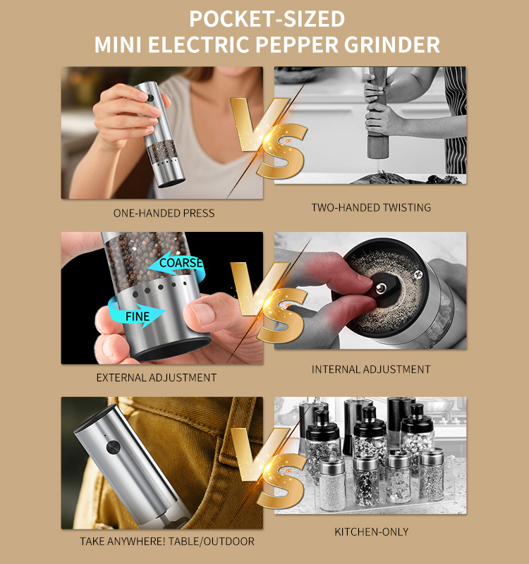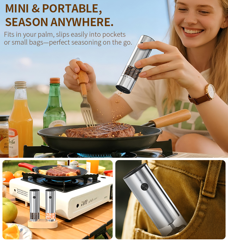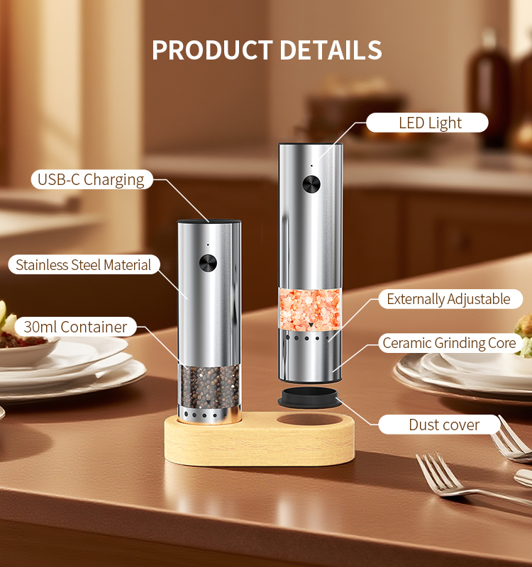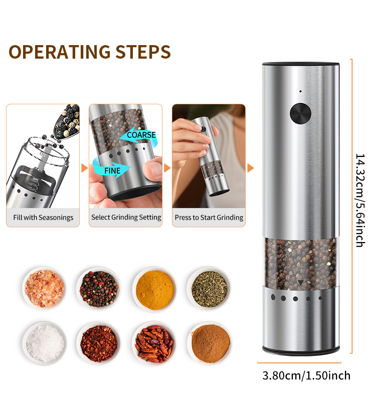 Electric Salt Grinder • Electric Pepper Grinder • Gravity Sensing Salt & Pepper Mill • Battery‑Operated Grinder • Adjustable Coarseness Spice Grinder