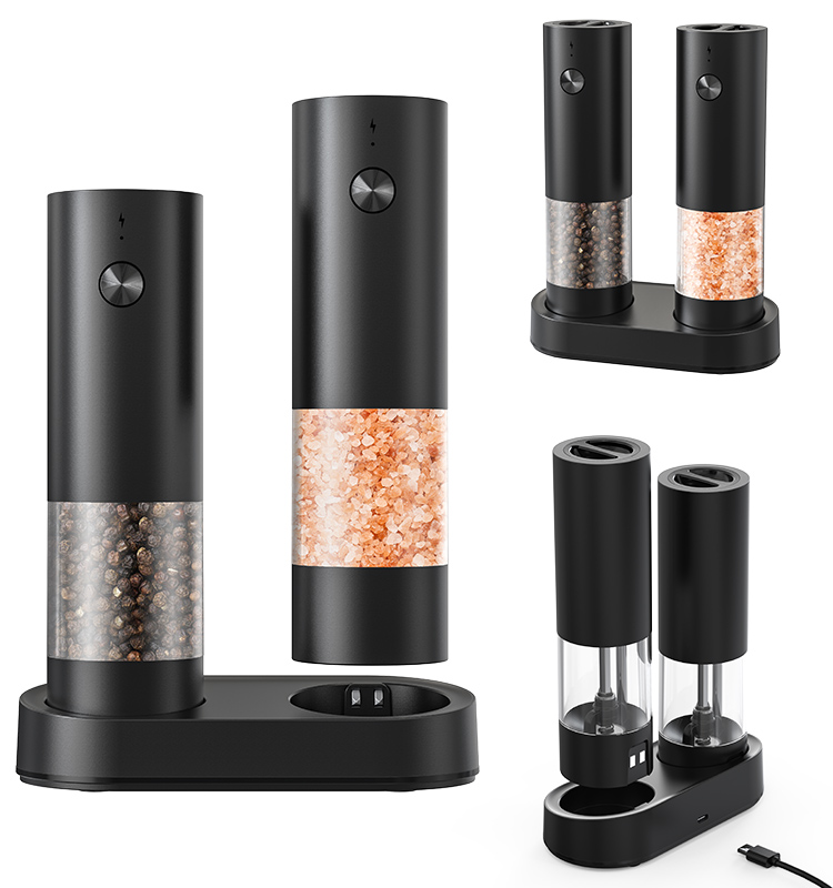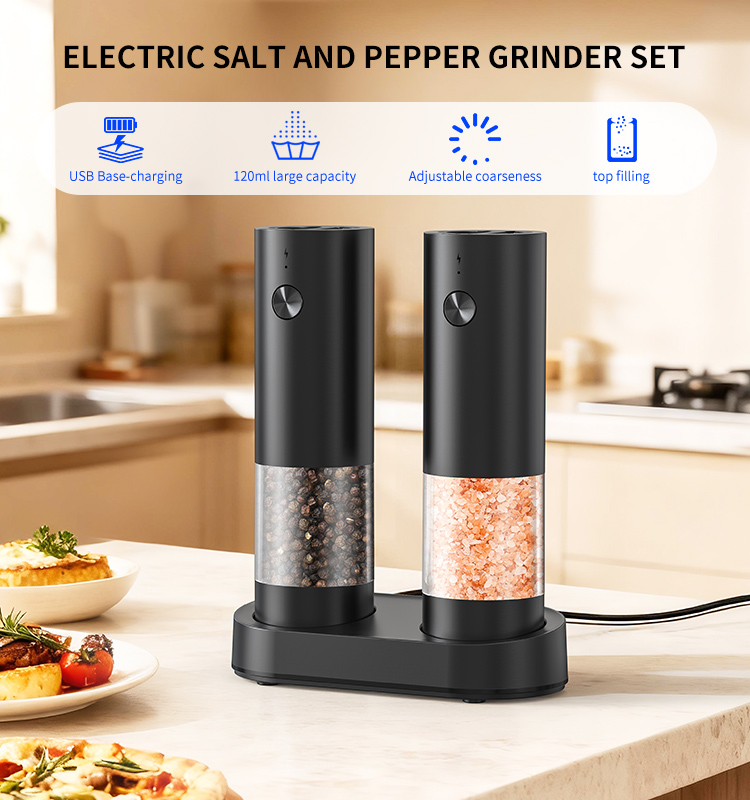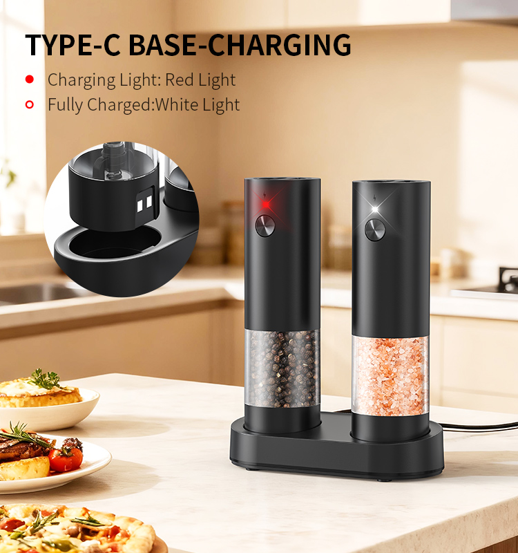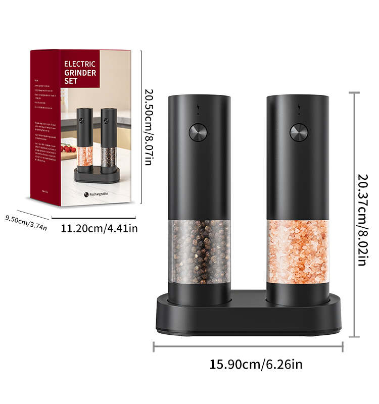 2025 Rechargeable Salt And Pepper Grinder Set Factory KYMQ-95C Large Volume Base Charging 2 pcs Set