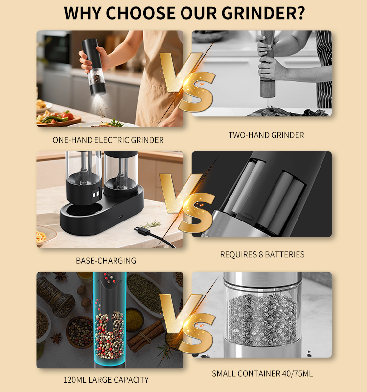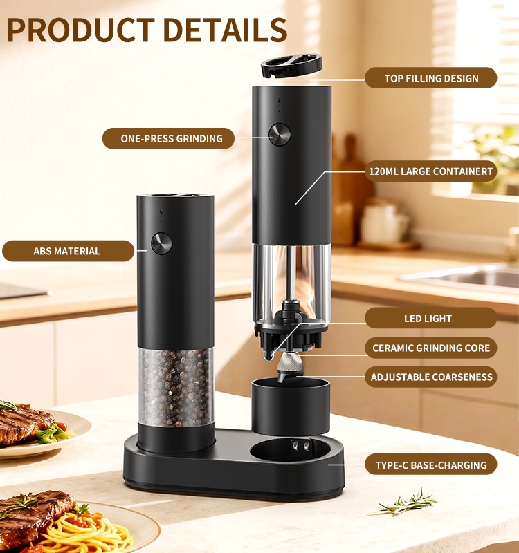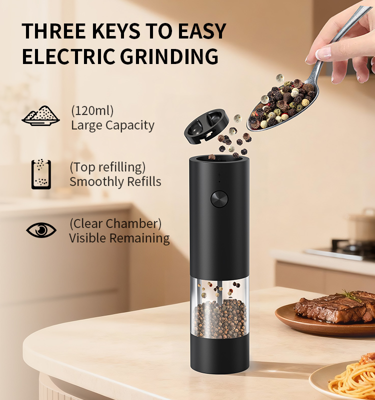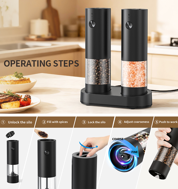 Electric Salt Grinder • Electric Pepper Grinder • Gravity Sensing Salt & Pepper Mill • Battery‑Operated Grinder • Adjustable Coarseness Spice Grinder